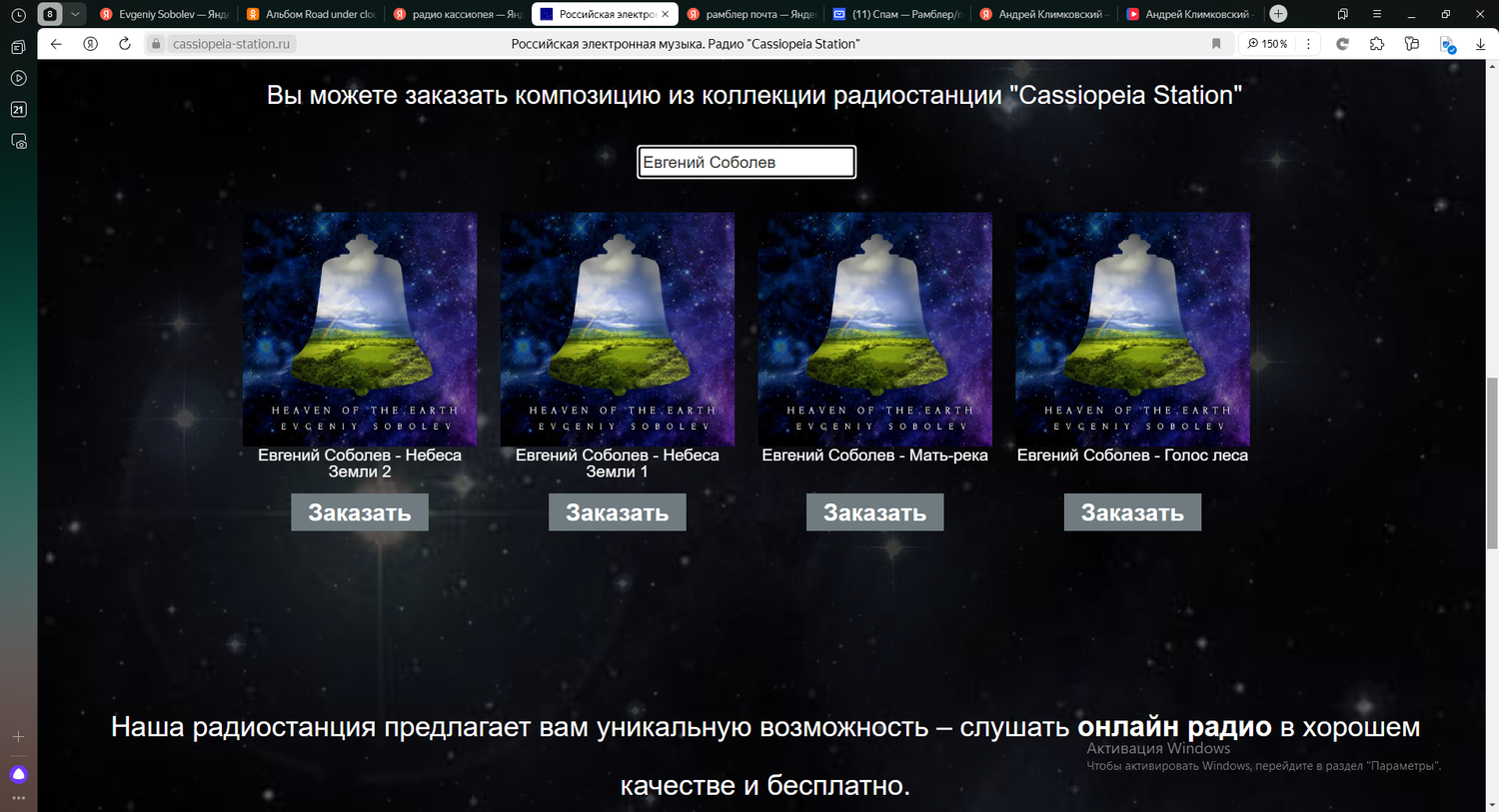 Благодаря Виталию Ветрову – увлеченному и деятельному популяризатору российской электронной музыки, мой альбом «Небеса Земли» находится в ротации этой замечательной радиостанции.